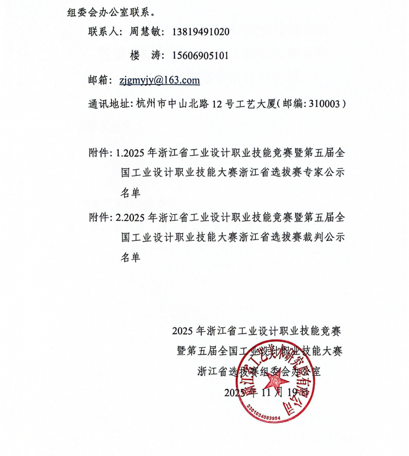 【职业技能大赛】关于公布2025年浙江省工业设计职业技能竞赛暨第五届全国工业设计职业技能大赛浙江选拔赛各赛项举办时间、地点的通知